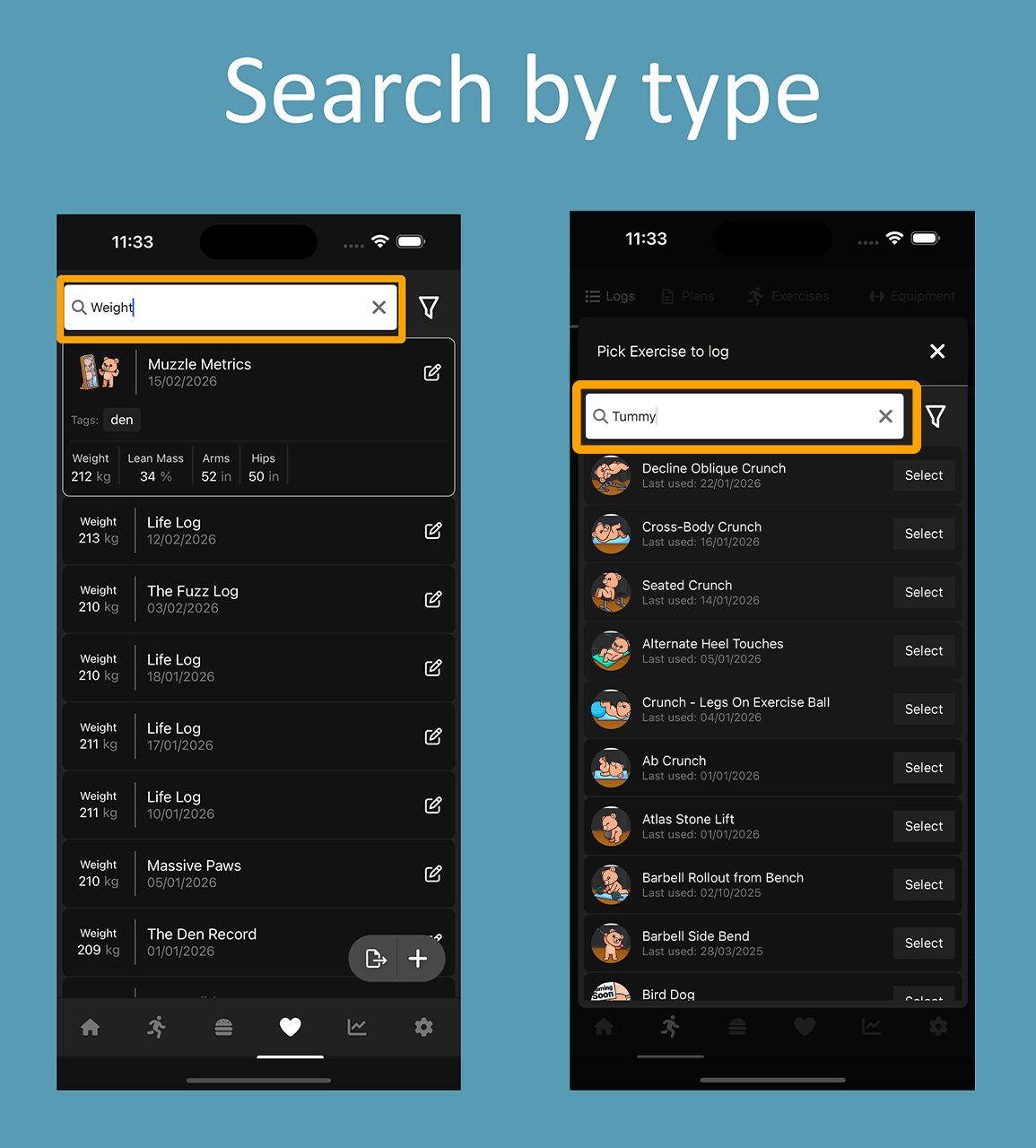 I even tied in equipment, muscle groups and exercise types, making it easier to find what i'm looking for just by typing
