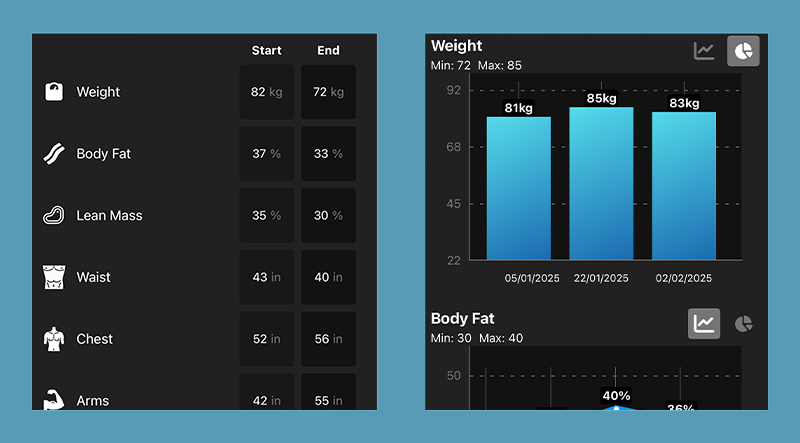 Body goals will always show as an interactive chart so you can follow your journey all the way :)